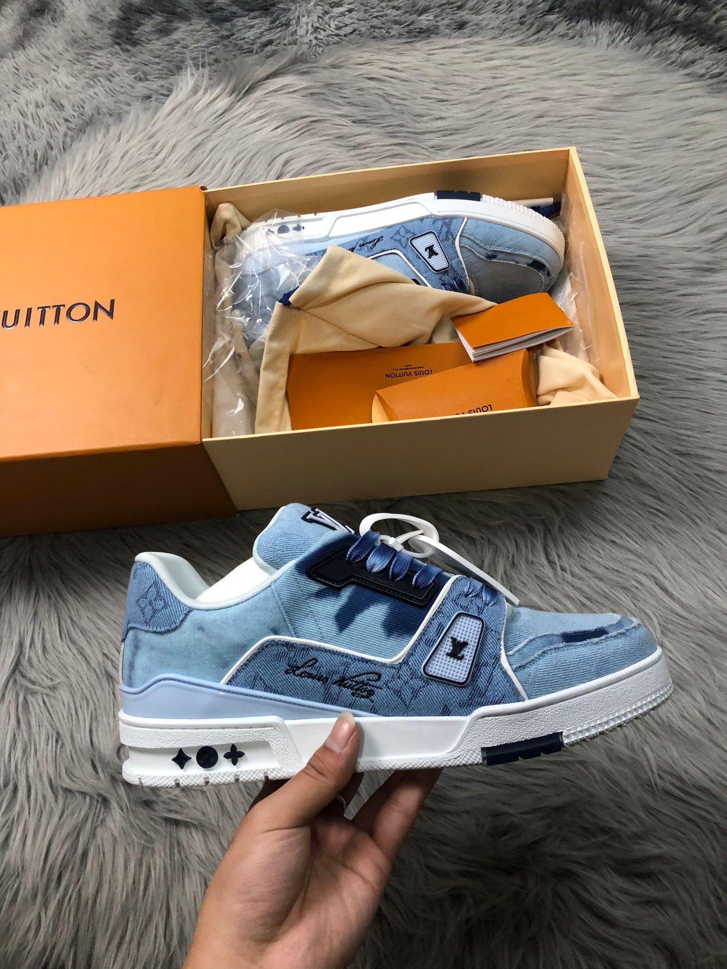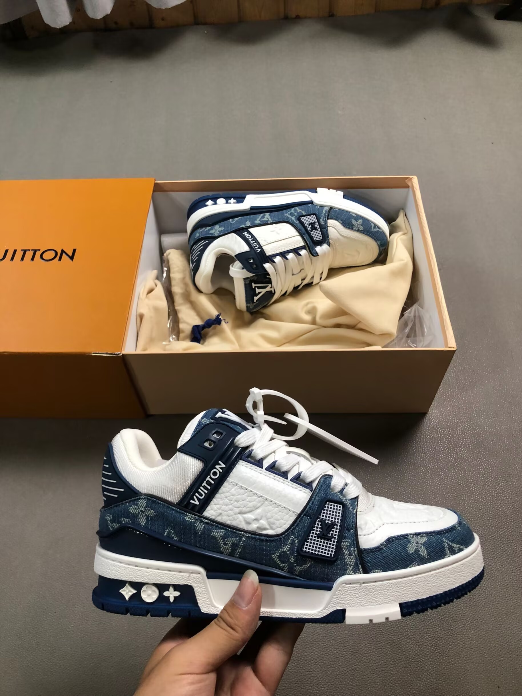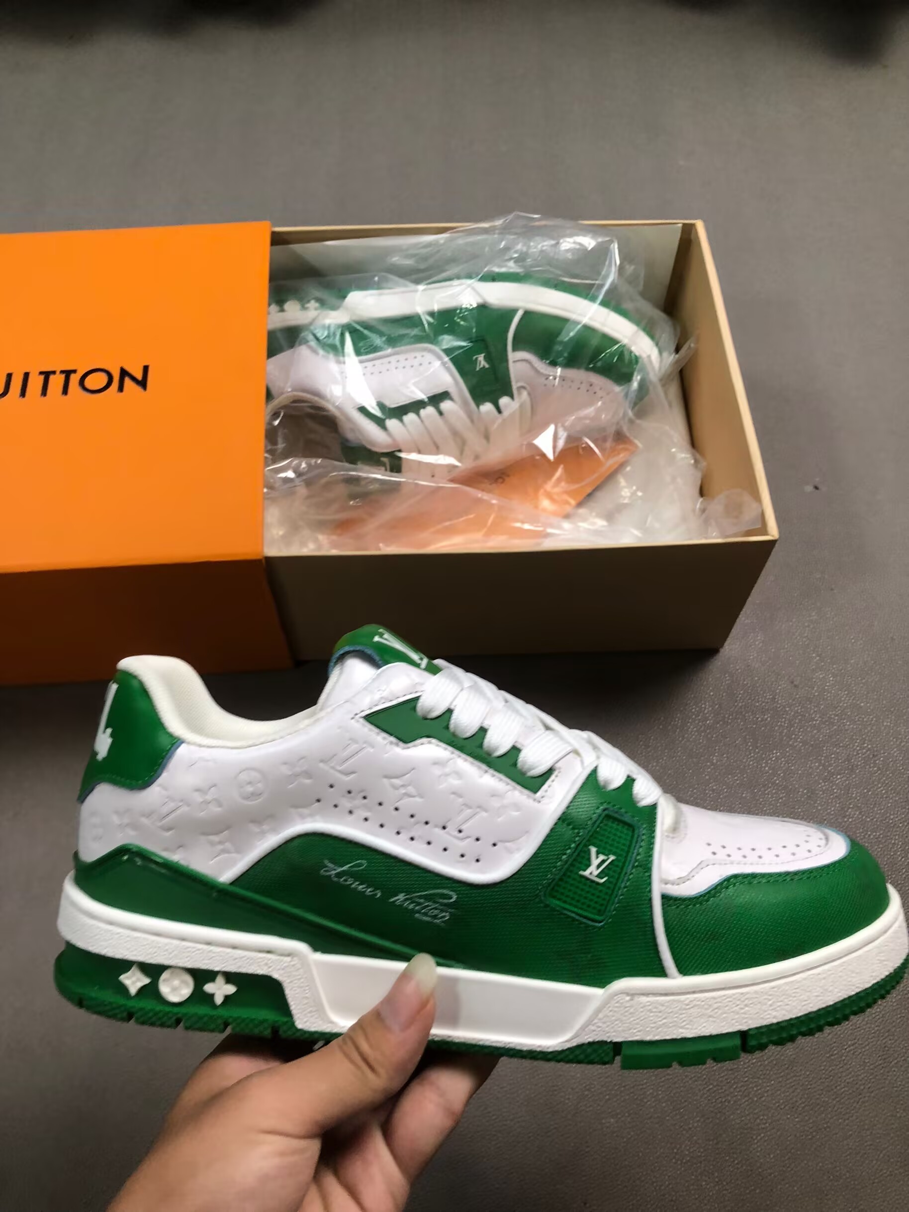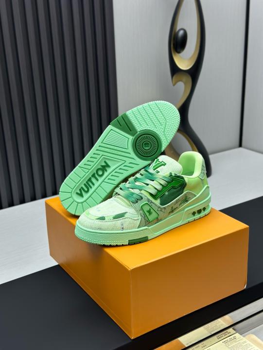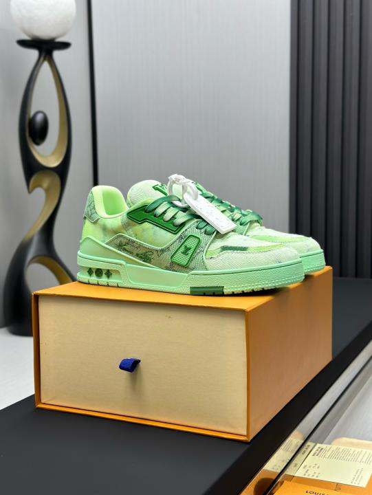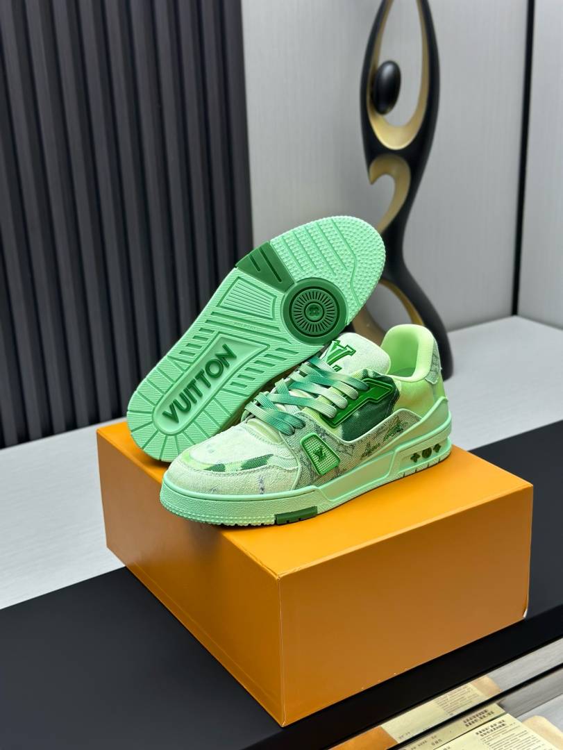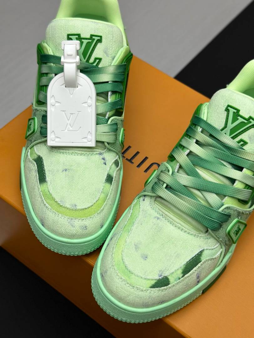 Step into bold luxury with these Green Monogram Denim Trainer Sneakers, designed for fashion lovers who appreciate premium streetwear with a modern edge. Crafted with high-quality bleached denim fabric, these trainers feature an eye-catching green monogram pattern that delivers a refined yet urban aesthetic.